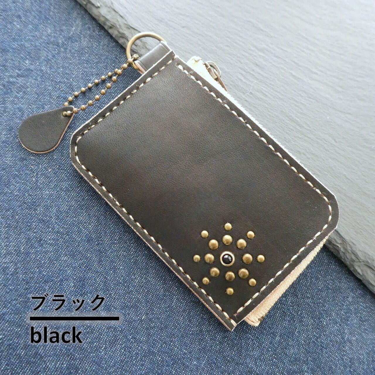 【手縫い】丘染めフラワースタッズL字ミニマムウォレット(栃木レザー)