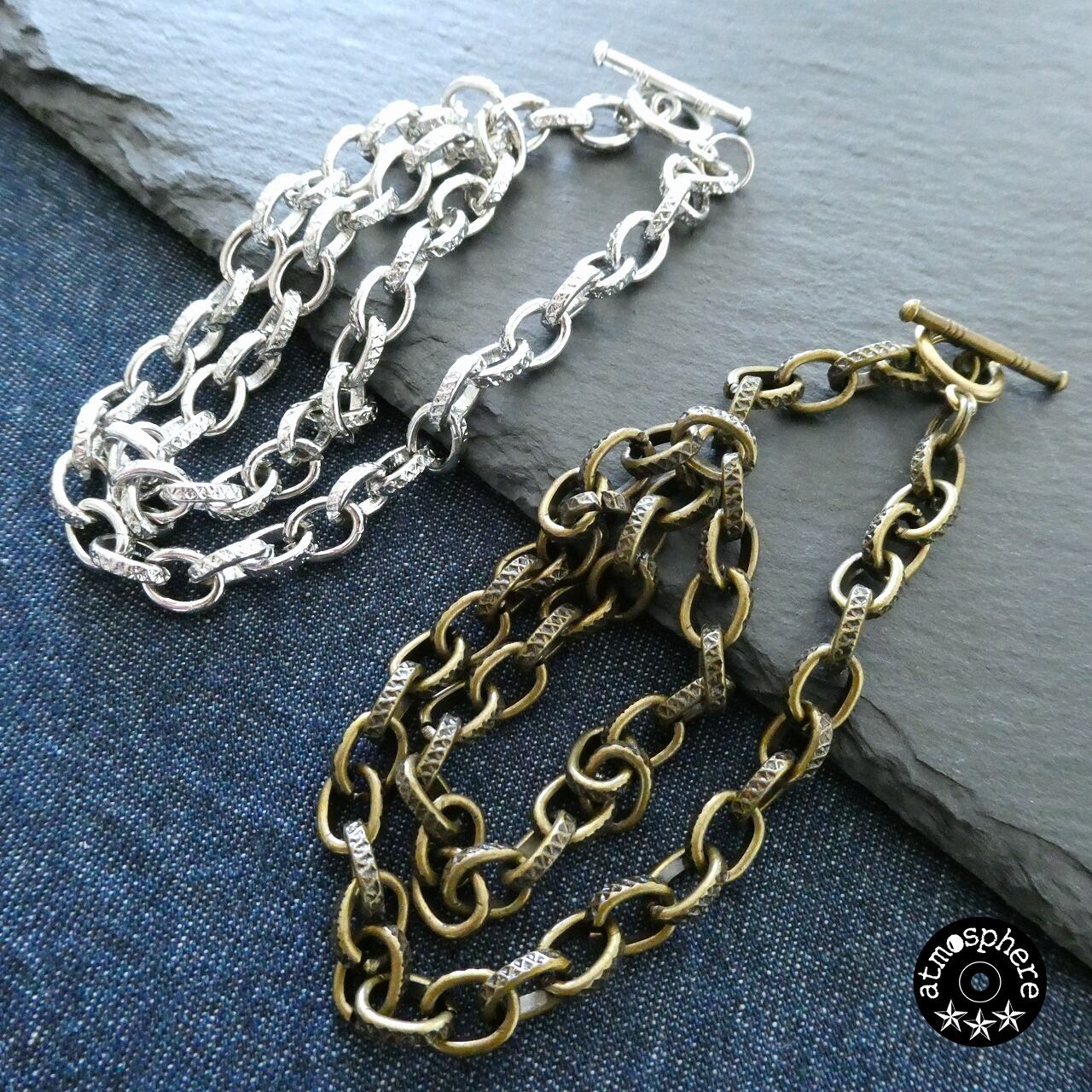 シンプルなデザインの模様入り小豆チェーン二重巻ブレスレットになります。