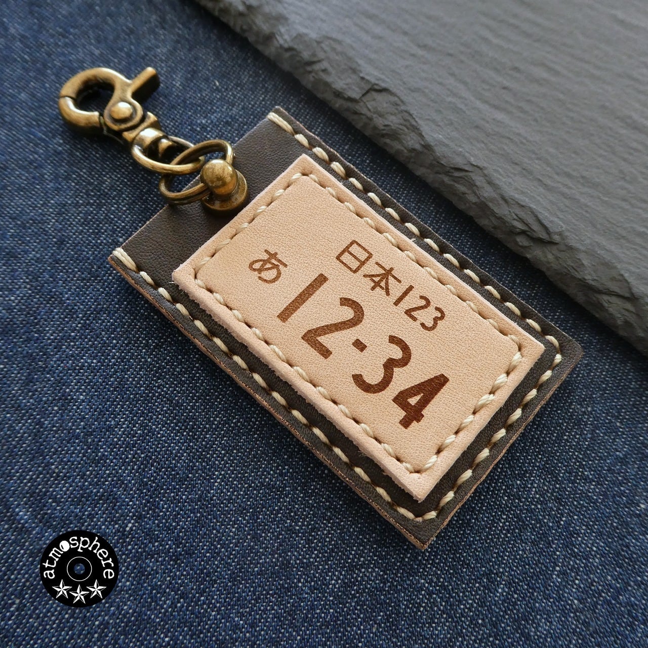 【刻印オーダー/手縫い】丘染めナンバプレートキーホルダー[栃木レザー]