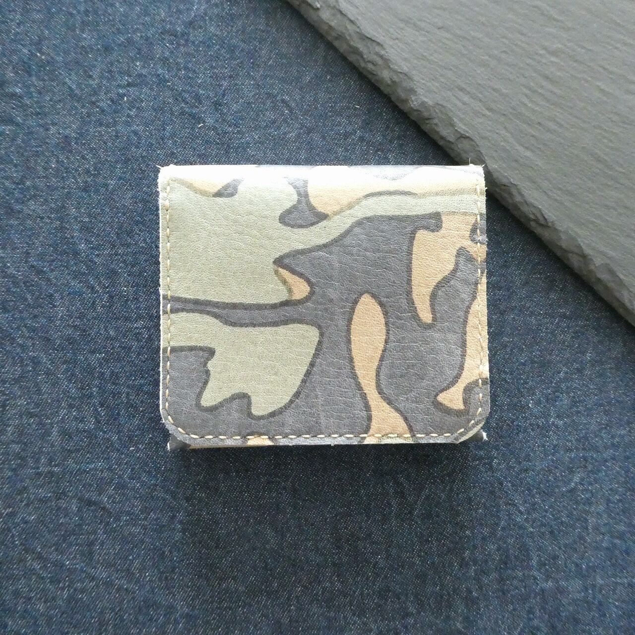 【手縫い】一枚革の折財布[捺染カモフラージュ柄コンビ鞣し牛革×栃木レザー]